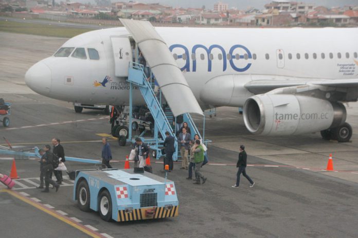 Unos 100 pasajeros desde las 05:30 esperaban para abordar el avión de TAME EP en el aeropuerto Mariscal Sucre, de Quito, para viajar a Cuenca, y no pudieron hacerlo porque no estaba listo.